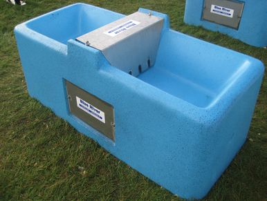We are proud to say these 14CH waterers are operating in a giant diary in AZ as well as many more local pitted barns. These come with a stainless steel sloped trough. You can order it with an end hood or a center hood with a variety of hood designs. The end hood can be built with a partition that can be sealed off in the winter allowing you to fill and heat only one half of the waterer in the winter! Genius!